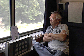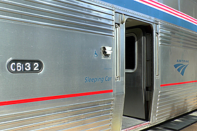 Um 7 Uhr halten wir dann über eine Std. am unattraktiven Bahnhof von Omaha um die Loks aufzutanken. Die Fahrt wird langweiliger, denn alles ist flach und gleich. Wir überqueren erst den Missouri, später den Mississippi und der hat deutlich mehr Wasser als vor einem Monat. 2 ½ Std. zu spät, da wir in der Nacht wegen Gleisarbeiten anhalten mußten (was ich gar nicht bemerkt habe), erreichen wir dann Chicago. Ich hab noch 1 Std. Zeit bis mein nächster Zug, der Capitol Limited , nach Washington abfährt. Auf dieser Fahrt ist wenig zu sehen, wir fahren meistens durch Wälder. Hier noch ein paar Daten zum CZ : Der California Zephyr ist ein Fernzug von Amtrak, der zwischen Chicago und Oakland bzw. San Francisco über eine landschaftlich spektakuläre Route durch die Rocky Mountains verkehrt. Dabei schlängelt sich der Zug durch enge Kurven, viele Tunnel und enge Canyons. Der Zug fährt zwischen Omaha und Sacramento auf der ersten transkontinentalen Bahnstrecke nach Kalifornien, deren Bau in vielen Westernfilmen thematisiert und die 1869 eröffnet wurde.