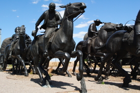 An den Land Run erinnert heute in Oklahoma City`s liebevoll restaurierter Altstadt Bricktown das Oklahoma Land Run Monument. Steht man zwischen den einzelnen Teilen dieser lebensgroßen Skulpturengruppe, bekommt man beinahe Angst, von Wagen überrollt und von Pferden zertrampelt zu werden.