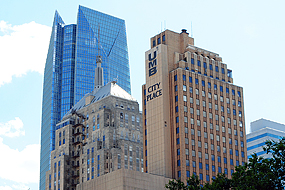 Downtown wird beherrscht vom Devon Tower. Der Turm hat eine Höhe von 259 Metern, dadurch ist er das höchste Gebäude der Stadt als auch des Bundesstaates, nach seiner Vollendung löste der den wenige hundert Meter entfernten Chase Tower (152 Meter) ab, der bis dato das höchste Bauwerk der Stadt war.