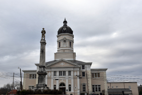 Es ist bewölkt aber mild. Ich komme trotz Frühstück früh los. Auf der US 61 folge ich dem Natchez Trace Parkway, einem früheren Handelsweg. Durch den Wald, nicht umrahmt von irgendwelchen Häusern oder Geschäften bringt mich diese idyllische Straße am Natchez Trace Mound vorbei, einer heiligen Stätte der Indianern. Danach geht es weiter nach Port Gibson. Neben dem- natürlich - schönen Claiborne County Courthouse erinnert ein großes Bild an den Boikott der schwarzen Bevölkerung an den weißen Geschäften, der hier blutig niedergeschlagen wurde.
