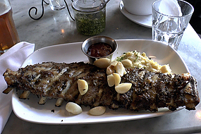Am Abend belohne ich mich mit der Stinking Rose, einem besonderen Lokal mit dem Slogan : Wir würzen unseren Knoblauch mit Speisen ….. der Knoblauch mit den Spare Rips schmeckt echt lecker.
