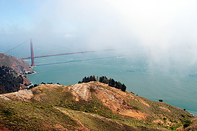 Das Bauwerk wurde 1937 eröffnet, hat eine lichte Durchfahrtshöhe von 67 Metern bei Flut und verbindet mit seinen sechs Fahrspuren und zwei Geh- und Radwegen San Francisco mit dem Marin County und dem weniger dicht besiedelten Napa- und Sonoma-Valley. Die Golden Gate Bridge war bei ihrer Eröffnung mit einer Hauptstützweite von 1280 Meter die längste Hängebrücke der Welt. Erst 27 Jahre später wurde sie 1964 von der Verrazano-Narrows-Brücke abgelöst, gehört aber weiterhin zu den längsten Hängebrücken weltweit. Der ganze Brückenzug ist inklusive der Zufahrtsbrücken 2737 Meter lang. Die eigentliche Hängebrücke hat eine Gesamtstützweite von 1966 Meter und weist 227 Meter hohe Pylone auf. Die Pylonstiele sind aus Stahl und in ihrer Dicke dreimal abgestuft. An jeder Abstufung sind sie durch Querriegel miteinander verbunden. Die Höhen der Stufen und der Querriegel nehmen nach oben ab. Der 27,4 Meter breite Fahrbahnträger besteht in Längsrichtung aus 7,6 Meter hohen Fachwerkträgern, die durch horizontale Verbände miteinander verbunden sind. Die beiden Kabel weisen einen Durchmesser von jeweils 0,92 Meter auf, an ihnen sind die Hänger in Abständen von je 15 Metern befestigt. Ein optisch als Bogenbrücke ausgelegtes Segment der Zufahrt der Brücke überspannt auf der Stadtseite das Fort Point.
