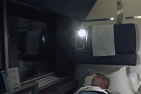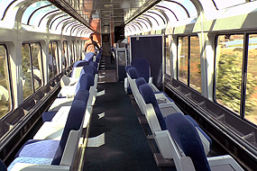 Der Wartesaal in der Amtrak Station ist voll, ¼ Std. vor Abfahrt meldet sich ein Amtrak Angestellter zu Wort : (Kurzform) hallo Leute, sie fahren gleich mit dem California Zephyr. Das ist etwas ganz Besonderes, genießen Sie jeden Augenblick. Der schönste Streckenabschnitt ist zwischen Sacramento und Reno und dann zwischen Grand Junction und Denver. Die Rede dauert ca. 10 Minuten und wir haben viel zu lachen. Dann kommt der Zug . Mein Schlafabteil ist im hintersten Wagen. Meine Roomette ist zwar klein und eng aber für mich reicht das vollkommen. Der Koffer wird im unteren Teil des Wagons verstaut. Dann fahren wir los, eine ½ Std. an der Bucht entlang, bevor es dann Richtung Sacramento geht. Dort erinnere ich mich wie ich vor ein paar Tagen noch draußen stand, heute sitze ich im Zug. Ein schönes Gefühl. Um die Mittagszeit wird dann zum Lunch gerufen, denn alle Mahlzeiten sind im Preis enthalten. Während wir durch die Sierra Nevada fahren unterhalte ich mich mit den Leuten an meinem Tisch während wir das Essen genießen. Natürlich stellt man sich vor und Hans aus Deutschland wird natürlich ausgefragt. Ich lerne Larry kennen, der gerne mal einen Joint raucht, und Sarat und Kita, geboren in China, aufgewachsen in den USA. Später sitze ich im Panoramawagen und lasse die wunderschöne Gegend an mir vorbeirollen. Wir erreichen Reno und haben dort einen längeren ungeplanten Aufenthalt, da Cops in Zivil, aber mit Kanone einen älteren Mann verhaften, der lt. Melcom , meinem Wagenbegleiter, jede Menge Stoff und Alkohol an Bord hatte. Wie kann man auch nur so bescheuert sein das Ticket erst einen Tag vorher und dann auch noch in bar zu kaufen, das fällt sofort auf. Nach dem Dinner funktioniert Melcom mein Zimmerchen in ein Schlafzimmerchen um. Dann wird es auch schon Dunkel. Gute Nacht.