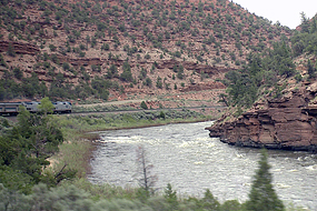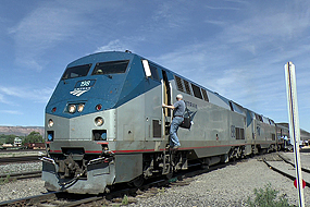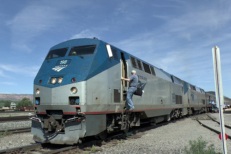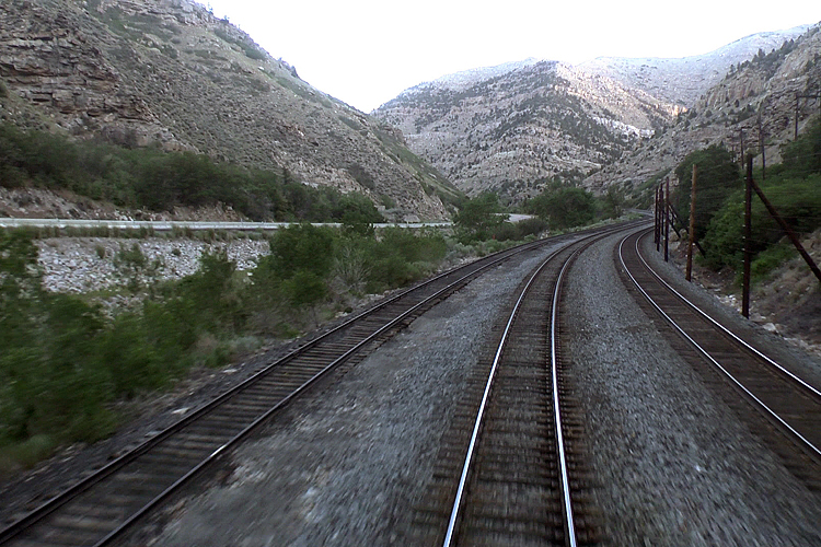 Um 1 Uhr fahren wir in SLC ein, ich bin wach. Als es hell wird beginnt die Fahrt durch die Rocky Mountains. Ab Grand Junction ( Colorado) wird es dann richtig interessant. Viele Meilen am Colorado River entlang ziehen uns die 2 Loks langsam hinauf auf über 2300 Meter. Viele Windungen geben mir die Gelegenheit den Zug zu filmen, da ich ganz hinten bin. Auch hinten raus, durch ein kleines Fenster kann ich die Landschaft bewundern. Das Mittagessen lass ich ausfallen, dafür ist die Gegend zu bezaubernd, ich könnte ja was verpassen. Nach dem 6 Meilen langen Moffat Tunnel geht die Reise langsam hinunter nach Denver. Als wir weiter fahren wird es langsam dunkel. Der Schaffner erklärt uns daß wir heute Nacht einige Gewitter zu erwarten haben, daß aber Tornado`s so gut wie ausgeschlossen sind, genießen Sie einfach die Lightshow. Danke, ach so wir sind ja in den Great Plaines. Und tatsächlich erhellen viele Blitze die Nacht, ein gutes Programm um einzuschlafen.