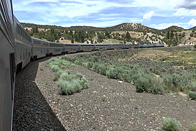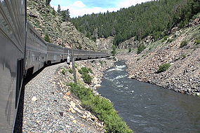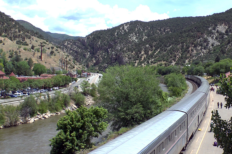 Westlich von Denver ändert sich die Landschaft dramatisch: Der Zug fährt nun auf steilen Rampen, durch viele Kurven und zahlreiche Tunnel die Ostflanke der Rocky Mountains hinauf. Mit dem Moffat-Tunnel als dem Scheiteltunnel wird die Nordamerikanische kontinentale Wasserscheide unterfahren. Von dessen westlichem Portal aus folgt der Zug durch eine Reihe von Canyons über mehrere Stunden dem Colorado River bis Grand Junction.