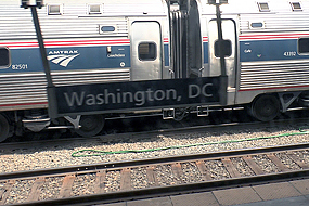 Um 7 Uhr halten wir dann über eine Std. am unattraktiven Bahnhof von Omaha um die Loks aufzutanken. Die Fahrt wird langweiliger, denn alles ist flach und gleich. Wir überqueren erst den Missouri, später den Mississippi und der hat deutlich mehr Wasser als vor einem Monat. 2 ½ Std. zu spät, da wir in der Nacht wegen Gleisarbeiten anhalten mußten (was ich gar nicht bemerkt habe), erreichen wir dann Chicago. Ich hab noch 1 Std. Zeit bis mein nächster Zug, der Capitol Limited , nach Washington abfährt. Auf dieser Fahrt ist wenig zu sehen, wir fahren meistens durch Wälder. Hier noch ein paar Daten zum CZ : Der California Zephyr ist ein Fernzug von Amtrak, der zwischen Chicago und Oakland bzw. San Francisco über eine landschaftlich spektakuläre Route durch die Rocky Mountains verkehrt. Dabei schlängelt sich der Zug durch enge Kurven, viele Tunnel und enge Canyons. Der Zug fährt zwischen Omaha und Sacramento auf der ersten transkontinentalen Bahnstrecke nach Kalifornien, deren Bau in vielen Westernfilmen thematisiert und die 1869 eröffnet wurde.