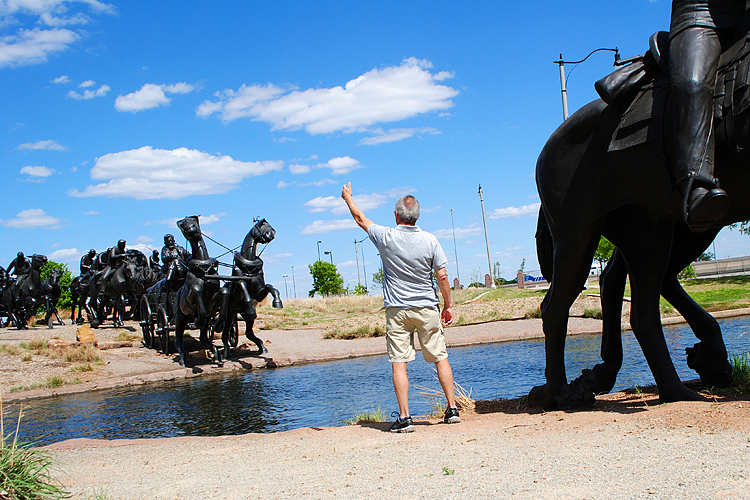 An den Land Run erinnert heute in Oklahoma City`s liebevoll restaurierter Altstadt Bricktown das Oklahoma Land Run Monument. Steht man zwischen den einzelnen Teilen dieser lebensgroßen Skulpturengruppe, bekommt man beinahe Angst, von Wagen überrollt und von Pferden zertrampelt zu werden.