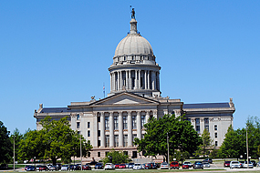 Ein eigenes Stadtviertel bildet der Regierungsbezirk ringsum das unübersehbare State Capitol im Osten des Stadtkerns. der Bau des Capitols, das die Legislative und Executive (Gesetzgebung und Verwaltung) berherbegt, begann 1914 und wurde 1917 fertiggestellt.Die Sicherheitsmaßnahmen sind streng, aber es der freie Eintritt lohnt sich allemal. Unter der riesigen Rotunde. Eine Rotunde (lateinisch rotundus, italienisch rotonda) ist ein Baukörper auf kreisförmigem Grundriss. Sie kann einfach sein oder monumentale Ausmaße annehmen, sakralen oder profanen Funktionen dienen und findet sich in der Architektur in allen Epochen. Sie ist im Inneren häufig, aber nicht notwendig, durch Konchen oder Nischen gegliedert und von einer Kuppel überwölbt. wird die Geschichte Oklahomas eindrücklich erzählt.