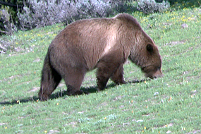 Ich verabschiede mich von Ulla und Alfred und breche früh auf (wegen Memorial und so …) Ich biege auf die Straße ab. Keine 500 Meter stehen viele Auto`s und Ranger, na hoffentlich kein Unfall. Ein Ranger hält mich an und sagt, bitte nicht anhalten bis Sie wieder an einer Ranger mit orangenen Weste vorbeifahren. Was ist hier los ? Dann sehe ich es, 3 Bären frühstücken am linken Straßenrand. Das scheint hier eine Sensation zu sein, denn ca. 100 Leute fotografieren mit riesigen Tele`s . Auch ich halte natürlich an und filme die Bären die sich durch den Auflauf nicht stören lassen.