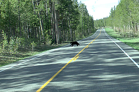 Ich fahre weiter auf der Tenton Park Road entlang, fasziniert von diesem Panorama. Die Berge spiegeln sich im Lake Jackson wider. Das Frühstück schmeckt besonders gut vor solch einer Kulisse. Als ich später durch ein Waldstück fahre sehe ich am Straßenrand einen Schwarzbären laufen und dann kreuzt der Hirni doch tatsächlich die Straße. Bei meiner Vollbremsung kommt das halbe Wohnzimmer nach vorne um zu sehen was da los ist.