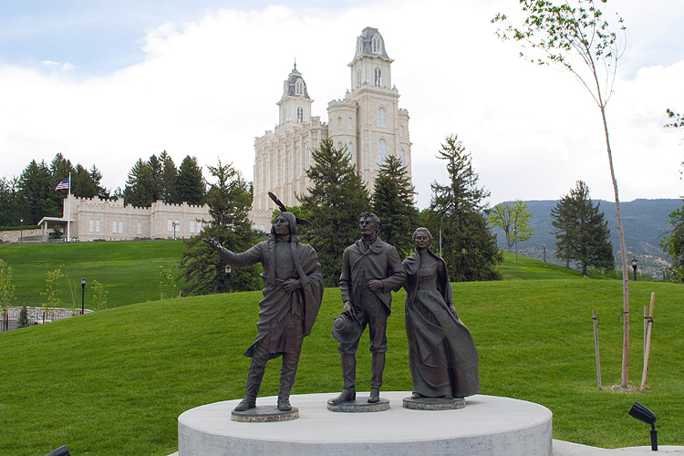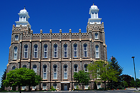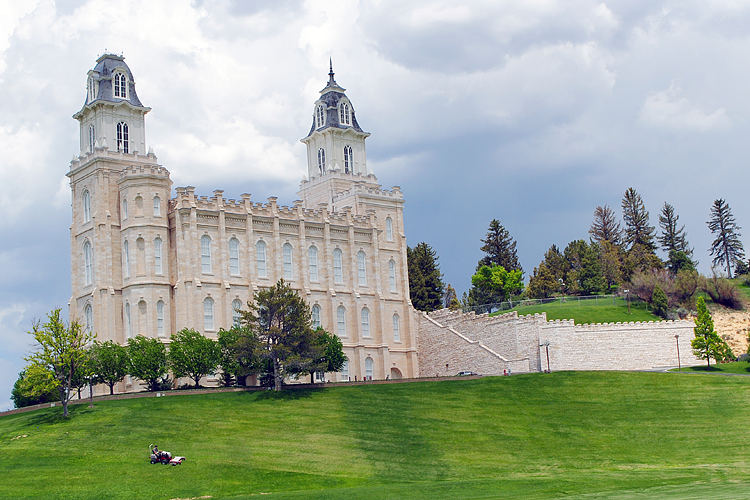 Es ist der Manti Tempel. „Wir fühlen uns veranlaßt zu den Mormonen in den Bergen zu sagen: Lasset uns einen Tempel bauen „